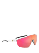 The Ferrari Scuderia FZ6005U5056Q sunglasses feature opal grey acetate frames paired with striking red gold mirror lenses. These unisex sunglasses offer 100% UV protection, combining sporty style with luxurious flair. Ideal for adding a touch of Ferrari elegance to any outfit.