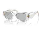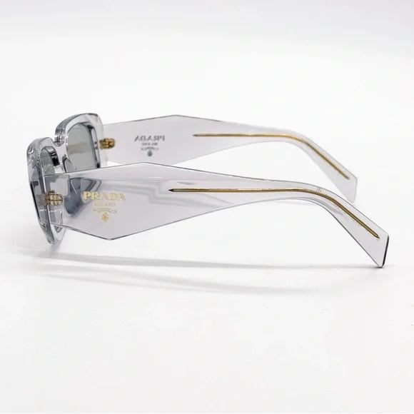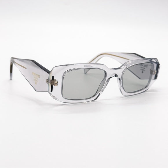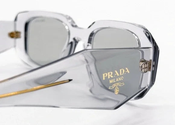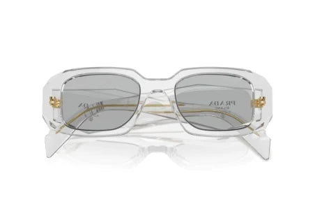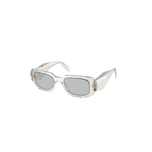 The Prada PR 17WS 12R30B sunglasses combine contemporary design with classic elegance. Featuring a transparent grey acetate frame with a rectangular shape, these sunglasses are complemented by grey lenses that provide 100% UV protection. Designed for unisex wear, they add a touch of sophistication to any ensemble.