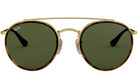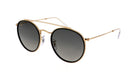 The Ray-Ban RB3647N 9238/71 sunglasses feature a round, full-rim metal frame in Legend Gold, complemented by gray gradient lenses. Designed for unisex wearers, these sunglasses offer a blend of classic and contemporary styles.