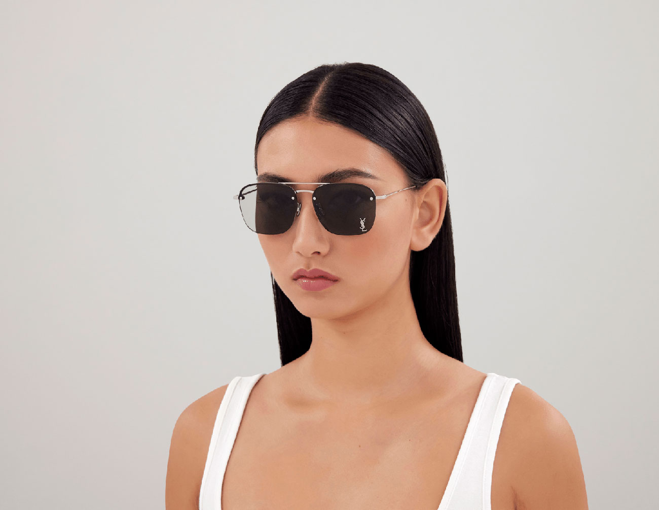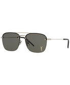 The Saint Laurent SL309M002 sunglasses are a timeless choice for those who appreciate classic aviator designs. With a shiny silver metal frame and solid grey lenses, they offer both style and 100% UVA/UVB protection. The subtle integration of the iconic YSL logo into the lens adds a unique and luxurious detail to the overall design.