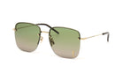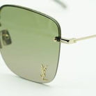 These Saint Laurent SL312M003 sunglasses feature a modern half-rim squared design crafted from lightweight gold-tone metal. The bold YSL logo is embedded in the green gradient lenses, adding a distinctive touch. Inspired by the Hawaiian chic aesthetic, these sunglasses offer both style and UV protection.