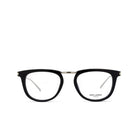 The SL753003 sunglasses by Saint Laurent feature a distinctive round-frame design, blending classic and contemporary styles. Crafted from high-quality recycled acetate, the front is presented in shiny solid black, complemented by silver-tone metal temples. The light yellow BIO NYLON lenses provide clarity and UV protection, enhancing both functionality and fashion.