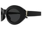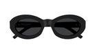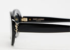 These Saint Laurent SLM136001 sunglasses feature a full acetate oval frame in black, exuding a vintage-inspired yet contemporary aesthetic. The design is accentuated by the iconic YSL monogram logo on the hinges, adding a touch of luxury. Black nylon lenses offer 100% UVA/UVB protection, ensuring eye safety.