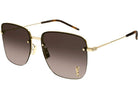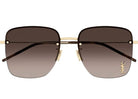 These Saint Laurent SL312M008 sunglasses feature a modern half-rim square design crafted from lightweight gold-tone metal. The brown gradient lenses provide 100% UVA/UVB protection, and the iconic YSL logo is embedded in the lens, adding a distinctive touch.