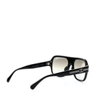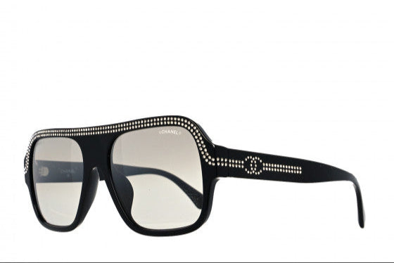 Make an unforgettable statement with these ultra-chic authentic Chanel Crystal CC Shield Sunglasses, model 71432A. This striking piece features a classic black shield frame that exudes modern glamour. The design is elevated by sparkling crystal embellishments at the iconic CC logo and along the arms, showcasing Chanel's renowned attention to luxurious detail. The dark grey lenses provide a sophisticated contrast and essential UV protection. Perfect for those who desire a bold, high-fashion accessory that combines avant-garde style with Chanel's timeless elegance