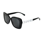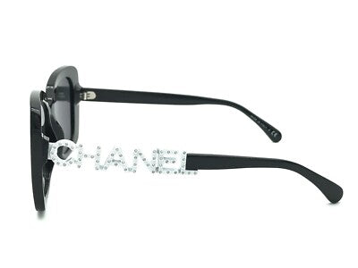 Embrace timeless Parisian elegance with these authentic Chanel CH5422B sunglasses. This sophisticated square frame, crafted from luxurious black acetate, makes a bold yet refined statement. The temples are exquisitely adorned with Chanel's iconic interlocking CC logo, meticulously set with sparkling diamanté (strass) for an unmistakable touch of glamour. The chic grey lenses offer a classic look while providing 100% UVA and UVB protection (UV Category Filter 3). Made in Italy, these sunglasses seamlessly blend Chanel's rich heritage with contemporary style, making them the perfect accessory for the discerning woman. Includes an official Chanel case and cleaning cloth.