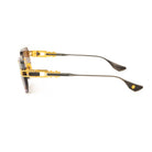 The Dita Grand-Imperyn DTS164-A-01 sunglasses epitomize the fusion of vintage aviation aesthetics and modern luxury. Inspired by the streamlined designs of fast cars, speedboats, and aircraft, these sunglasses feature a bold aviator shape with a yellow gold and black iron frame. The dark grey gradient lenses provide 100% UV protection, ensuring both style and functionality. Handmade in Japan, these sunglasses are a testament to Dita's commitment to exceptional craftsmanship and timeless design.