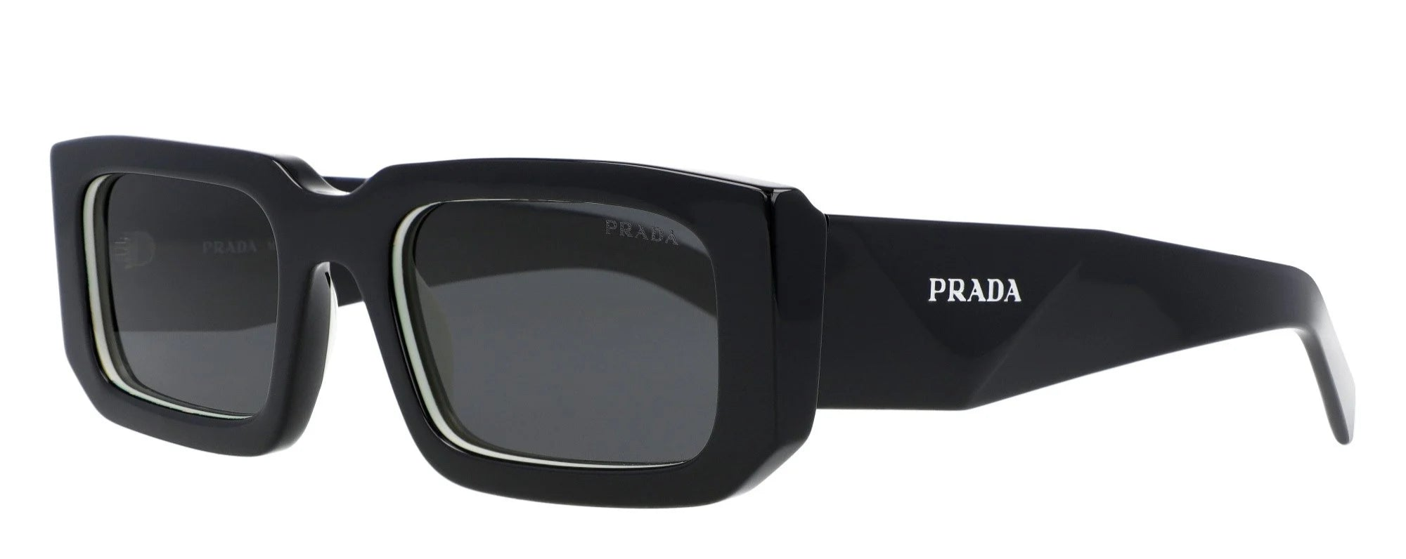 The Prada PR A05S 16K08Z sunglasses exemplify a blend of contemporary design and timeless elegance. Featuring a black acetate frame with a geometric square shape and unique flat brow bar, these sunglasses are complemented by dark grey lenses that provide 100% UV protection. Designed for fashion-forward individuals, they add a touch of sophistication to any ensemble.