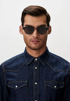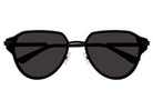 The Bottega Veneta BV1271S sunglasses are a sophisticated choice for those who appreciate timeless aviator designs. With a sleek black metal frame and solid grey bio-nylon lenses, they offer both style and 100% UV protection. The signature woven design on the temples adds a distinctive and luxurious touch, making these sunglasses a standout accessory.