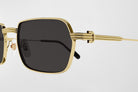 The Cartier CT0463S 001 56, CT0463S 003 sunglasses feature an elegant rectangular design with a full rim construction, embodying the Première de Cartier collection's bold aesthetic. The temples are adorned with the iconic C Décor and Godron details, blending aesthetic appeal with functional hinge elements. Finished in gold, these sunglasses exude luxury and sophistication.