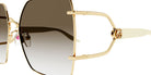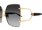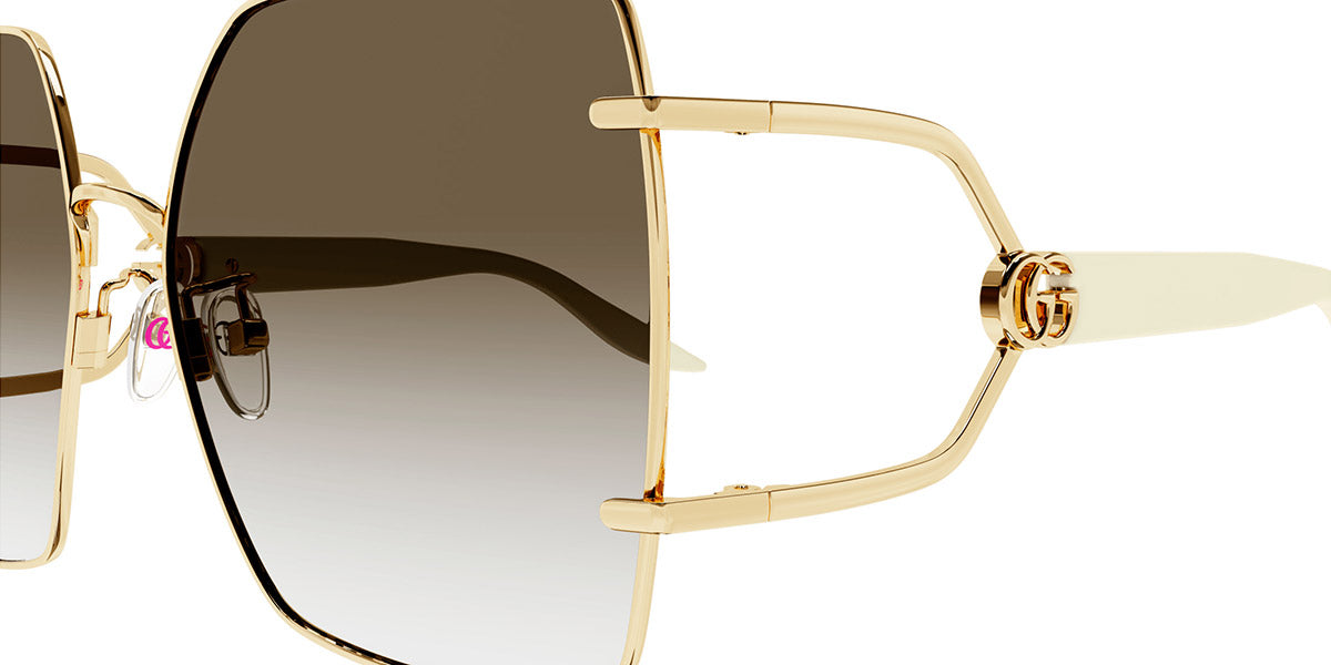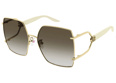 Embrace timeless elegance with the Gucci GG1564SA 001 , GG1564SA 002, GG1564SA 003 sunglasses. Featuring a luxurious gold metal frame with black temples, these butterfly-shaped sunglasses are adorned with the iconic GG Running logo. The grey gradient lenses offer 100% UV protection, combining style with functionality.