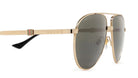 Drawing inspiration from vintage archives, the new Running Web design features an enamel metal insert at the center of the temple. This masculine aviator style is crafted entirely from metal with a double bridge construction. The Gucci logo is lasered onto the temple. The color scheme includes gold and silver metal frames, paired with bold solid and gradient lenses, along with a clear lens option to complete the collection.