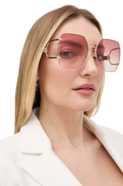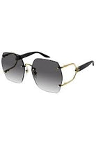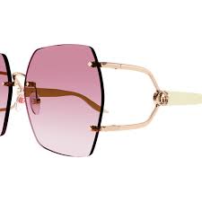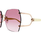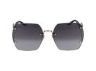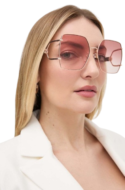 Embrace vintage-inspired elegance with the Gucci GG1562S 004 , GG1562S 001 sunglasses. These oversized hexagonal sunglasses feature a luxurious gold metal frame complemented by ivory-colored temples, exuding timeless sophistication. The violet gradient lenses provide 100% UV protection, ensuring your eyes are shielded from harmful rays while you bask in style. The iconic GG Running logo on the temples adds a touch of signature Gucci flair.