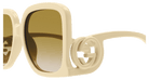 The Gucci GG1326S sunglasses showcase a sophisticated ivory acetate frame with a bold, oversized square shape, offering a chic, contemporary look. The gradient brown lenses provide excellent UV protection while enhancing the stylish appeal. Finished with the iconic GG Interlocking logo on the temples, these sunglasses are the perfect accessory for adding luxury and flair to any outfit.