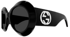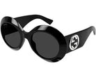 The Gucci GG1647S sunglasses feature a sophisticated round frame, crafted from high-quality black acetate. With a clean, minimalistic design, these sunglasses are a versatile addition to any wardrobe. The dark grey lenses offer optimal UV protection, while the iconic GG logo on the temples adds a subtle, luxurious touch. Perfect for those who prefer a timeless, yet contemporary look.