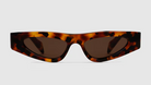 - Havana tortoiseshell acetate temples with Gucci logo