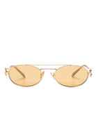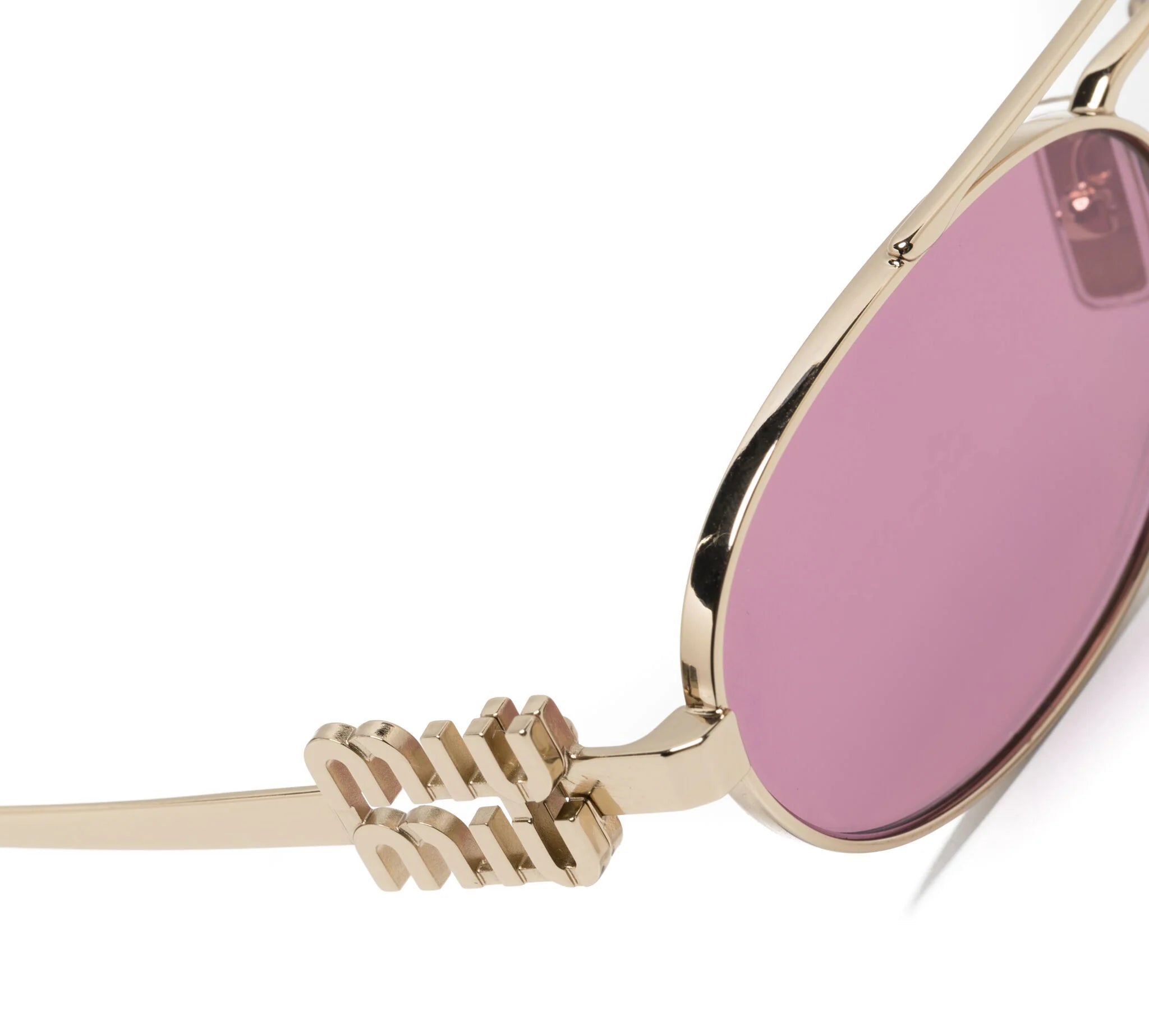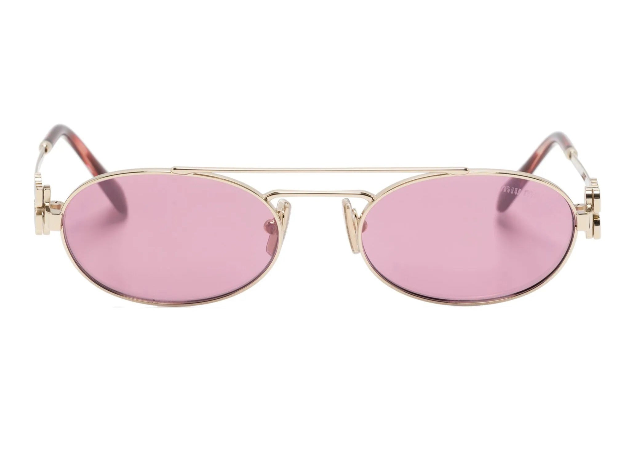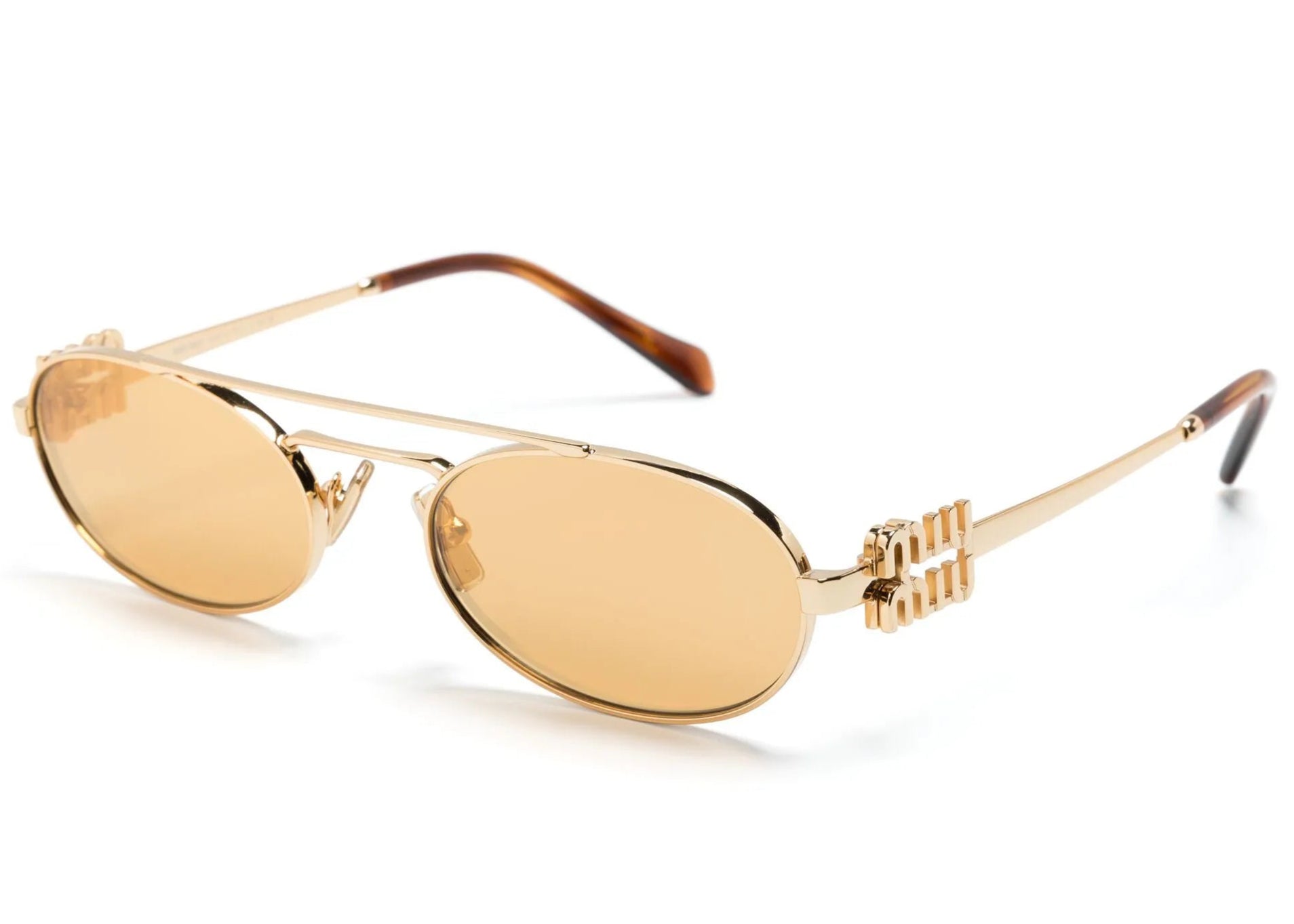 Miu Miu MU54ZS 5AK40D , MU54ZS 5AK30C , MU54ZS 7OE5D1 oval frame, gold metal brown lens sunglasses with logo details.