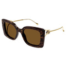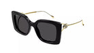 The GG1567SA and GG1567S01 Sunglasses by Gucci feature a butterfly-shaped design with a full rim injection frame, offering a sophisticated and fashionable look. These sunglasses come in two color options and sizes, making them versatile for various tastes.