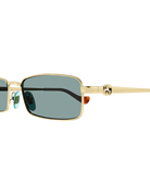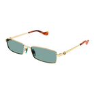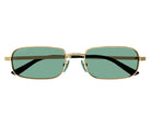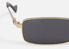 The Gucci GG1600S001 and GG1600S003 sunglasses epitomize a harmonious blend of timeless elegance and contemporary design. Crafted with a sleek gold metal frame, these rectangular sunglasses feature grey lenses that provide 100% UV protection, ensuring both style and functionality. A distinctive GG cut-out logo embellishes both temples, adding a touch of iconic branding. Notably, the removable chain attachment on the temples enhances both versatility and fashion-forward appeal. These sunglasses are delivered with a branded silk dust bag, cleaning cloth, and a velvet hard case, underscoring Gucci's commitment to luxury and quality.