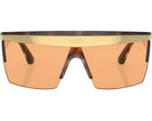 Elevate your style with the Versace VE2254C100274 sunglasses, featuring a semi-rimless shield design with a Havana acetate and gold metal frame, complemented by dark orange lenses. These sunglasses offer 100% UV protection, combining luxury and functionality.